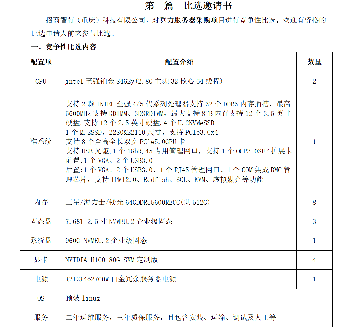 算力服务器竞争性比选文件